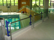 Hier war die Mauerkrone, bestehend aus Stahlbeton, die mit den alten Stahlpfosten und den ESG Scheiben die Brüstung zwischen 2 Ebenen darstellt, durch Chloride total zersetzt. Aus diesem Grund haben wir hier die Mauerkrone abgesägt, die Bewährung zweikomponentig und eine Dampfbremse mit Epoxidharz neu eingebracht. Bedingt durch enges Zeitfenster wurde schnell abbindender Beton eingesetzt, der zur Aufnahme der neuen Edelstahlpfosten dient und nach wenigen Tagen mit Epoxidharz beschichtet wurde. Nun konnten die neuen VSG - Scheiben eingesetzt und die Baustelle zeitgerecht fertiggestellt werden.