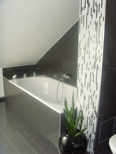 Hier ein Beispiel dafür, dass auch in einem Dachgeschoss ein Bad stilvoll und exklusiv gestaltet werden kann.