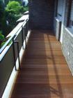 Hier musste ein alter, undichter Bodenbelag inklusive Estrich und defekter oberer Betonschicht abgetragen und neuer Stahlbeton ergänzt werden. Nun konnten neue Bodeneinläufe, sowie Gefälle und Abdichtung eingebracht werden. Dies wurde zuletzt mit einem Bangkirai Bodenbelag fertiggestellt.